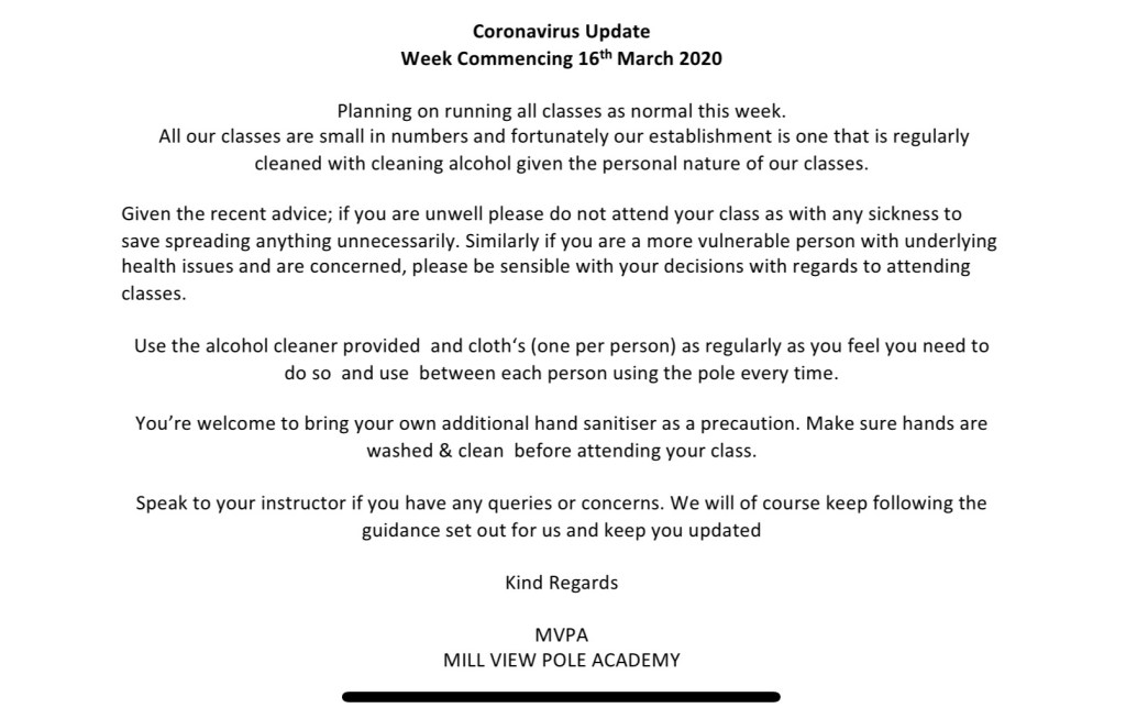 HEALTH & SAFETY on Mar 16, 2020Mar 16, 2020 By kileyletch Share this: Click to share on X (Opens in new window) X Click to share on Facebook (Opens in new window) Facebook Like Loading...