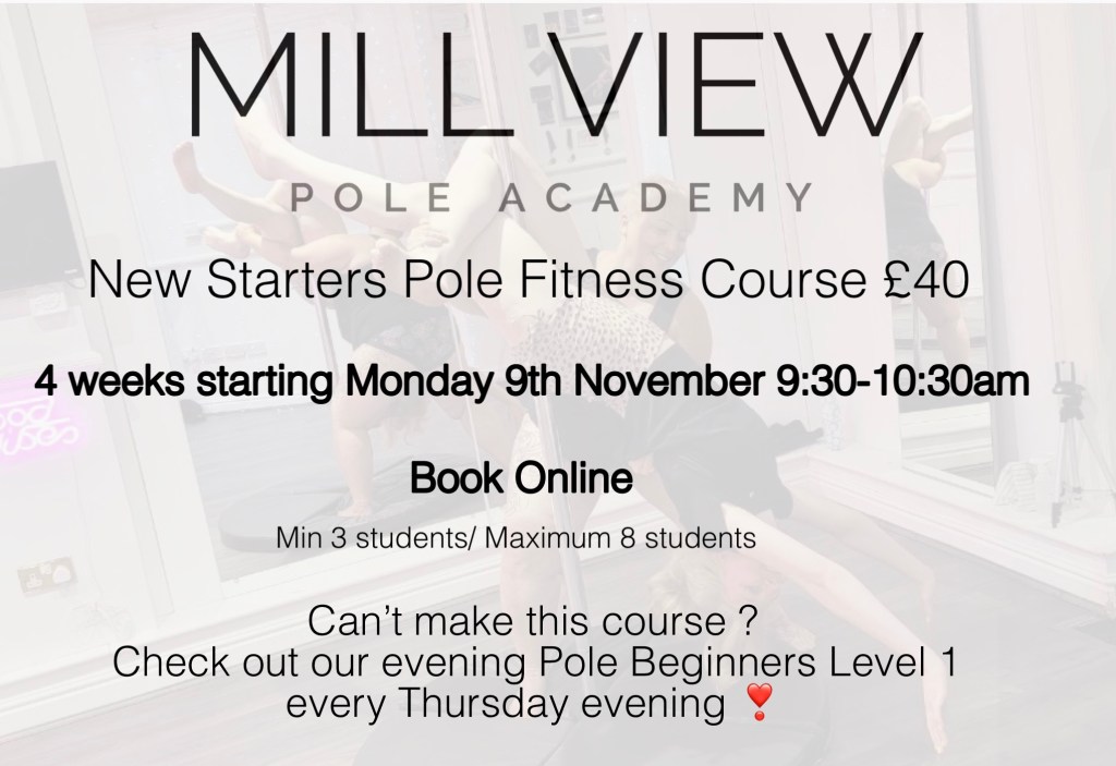 New Starters day time Pole-fit course starting soon! on Oct 4, 2021Oct 4, 2021 By kileyletch BOOK NOW Share this: Click to share on X (Opens in new window) X Click to share on Facebook (Opens in new window) Facebook Like Loading...