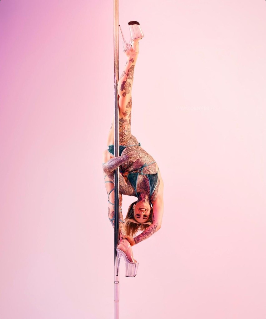She specialises in flexibility, flow and dance-based pole, with a strong focus on fluid movement, control and musicality.